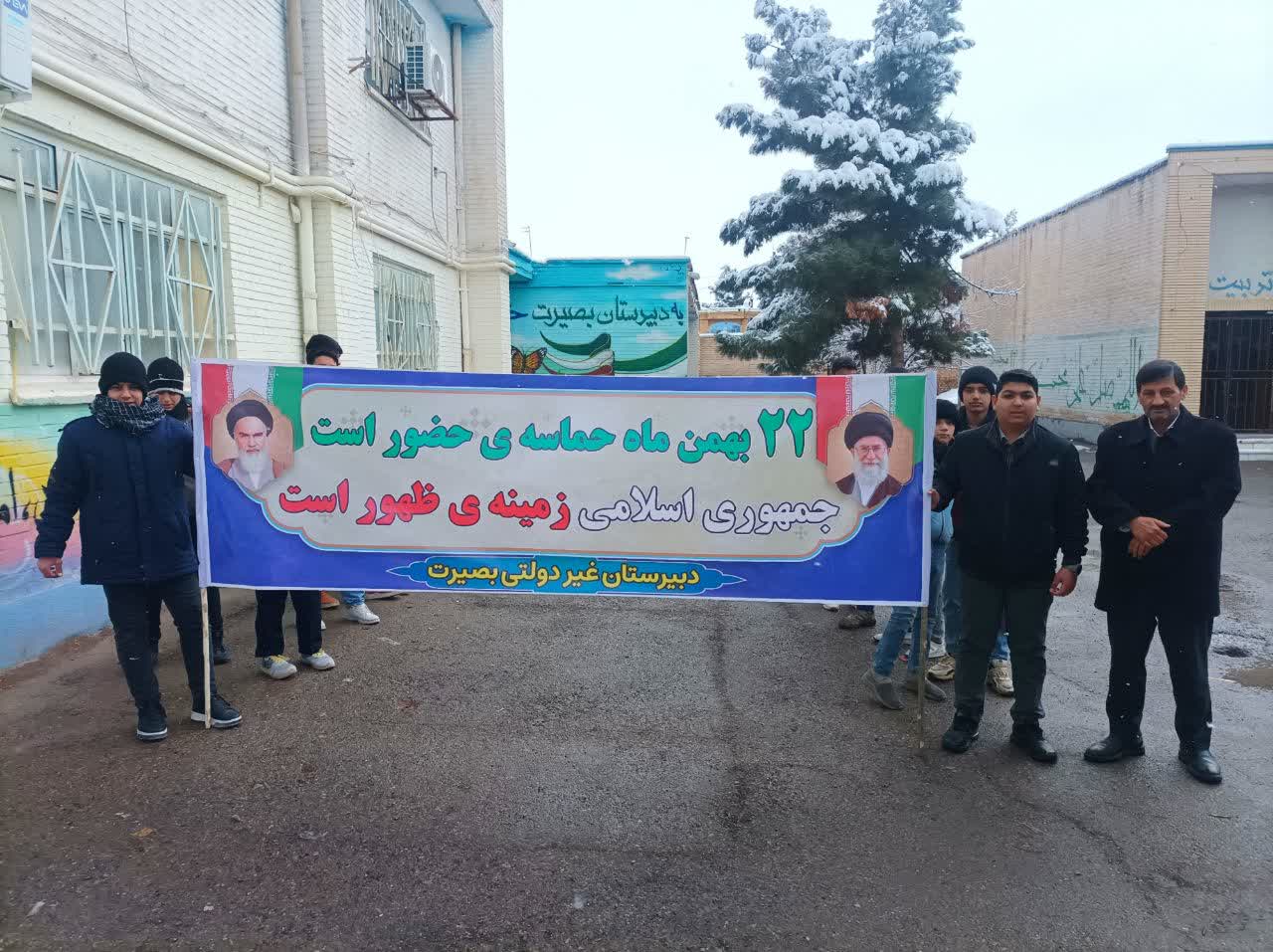 دانشآموزان دبیرستان بصیرت با شور و نشاط در مراسم راهپیمایی ۲۲ بهمن حضور یافتند و با همراهی کادر مدرسه، جلوهای از همدلی، انسجام و مشارکت اجتماعی را رقم زدند. این برنامه فرصتی ارزشمند برای تجربه میدانی فعالیتهای فرهنگی و حضور مؤثر در برنامههای عمومی بود که ضمن تقویت حس تعلق اجتماعی، فضایی متفاوت و پرنشاط برای دانشآموزان فراهم کرد.